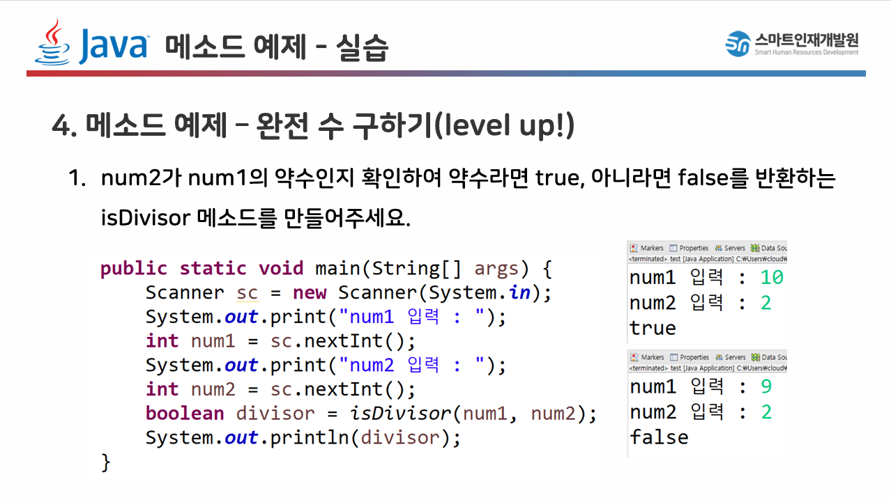 if (isDivisor(num, i)) { // 메소드에서 다른 메소드를 호출 가능하다!
