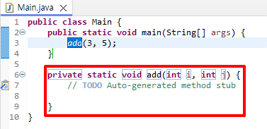 여기서 add 메소드는 두 개의 정수를 받아 그 합을 반환합니다.