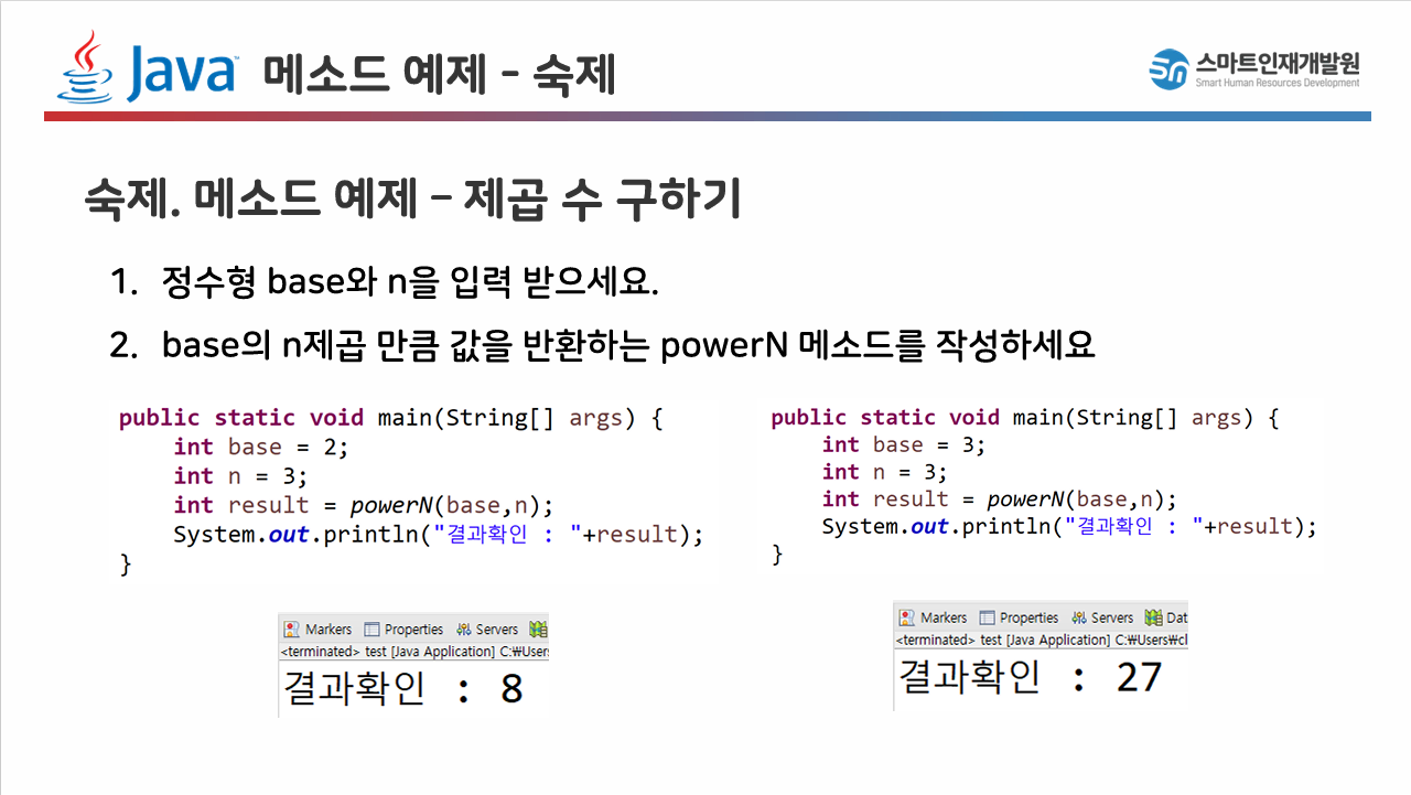 예제가 많은 걸 보셔도 알 수 있습니다. 그만큼 많이 사용하고 유용한 것이 메소드입니다. 여러분들도 메소드 생성과 사용에 익숙해지시길 바랍니다. 감사합니다!