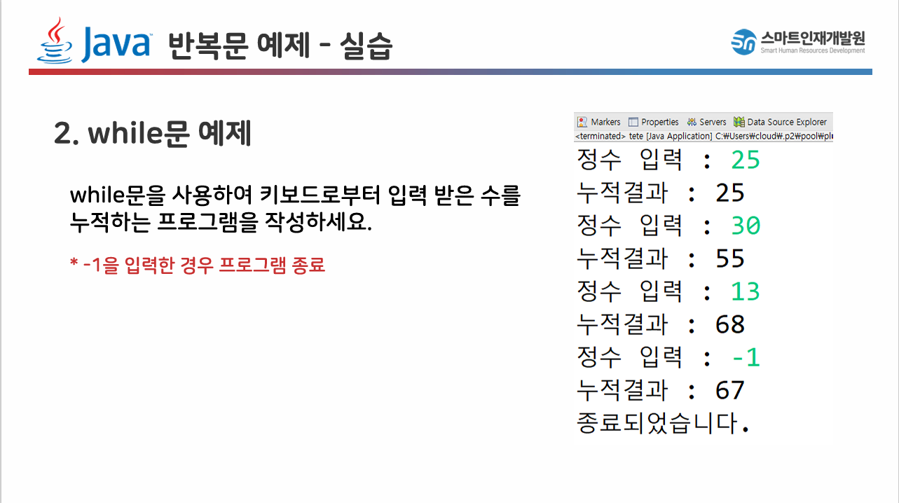 System.out.println("누적결과 : " + sum); // 누적결과 출력해주기