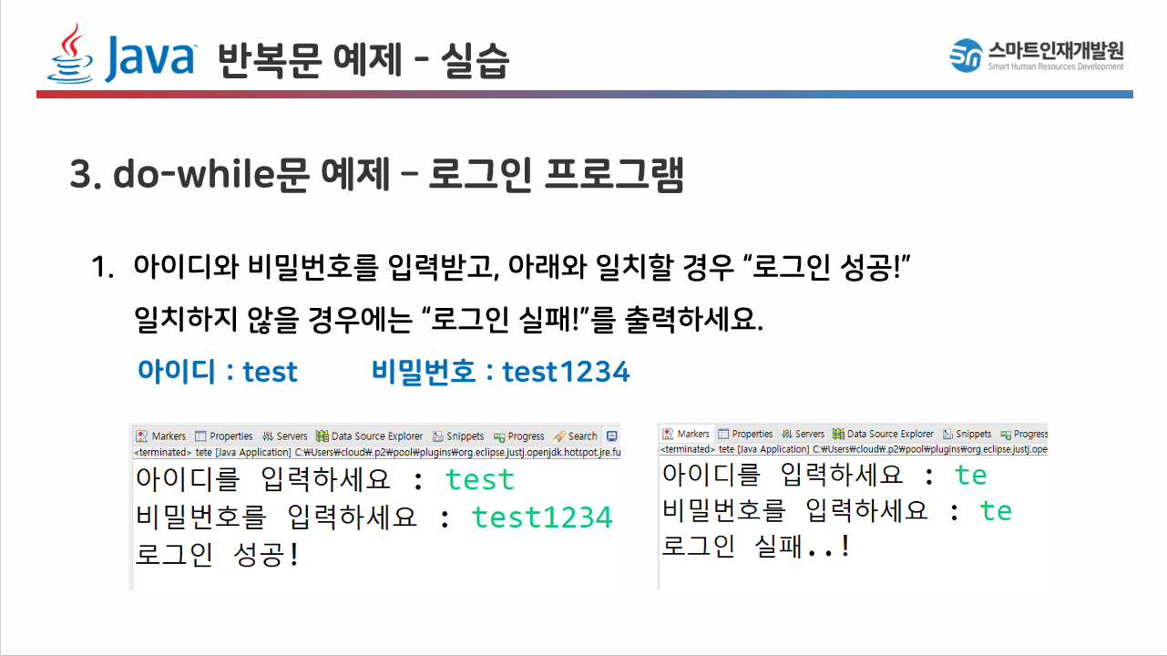 if (id.equals("test") && pw.equals("test1234")) { // 아이디와 비밀번호 모두 일치하면 실행