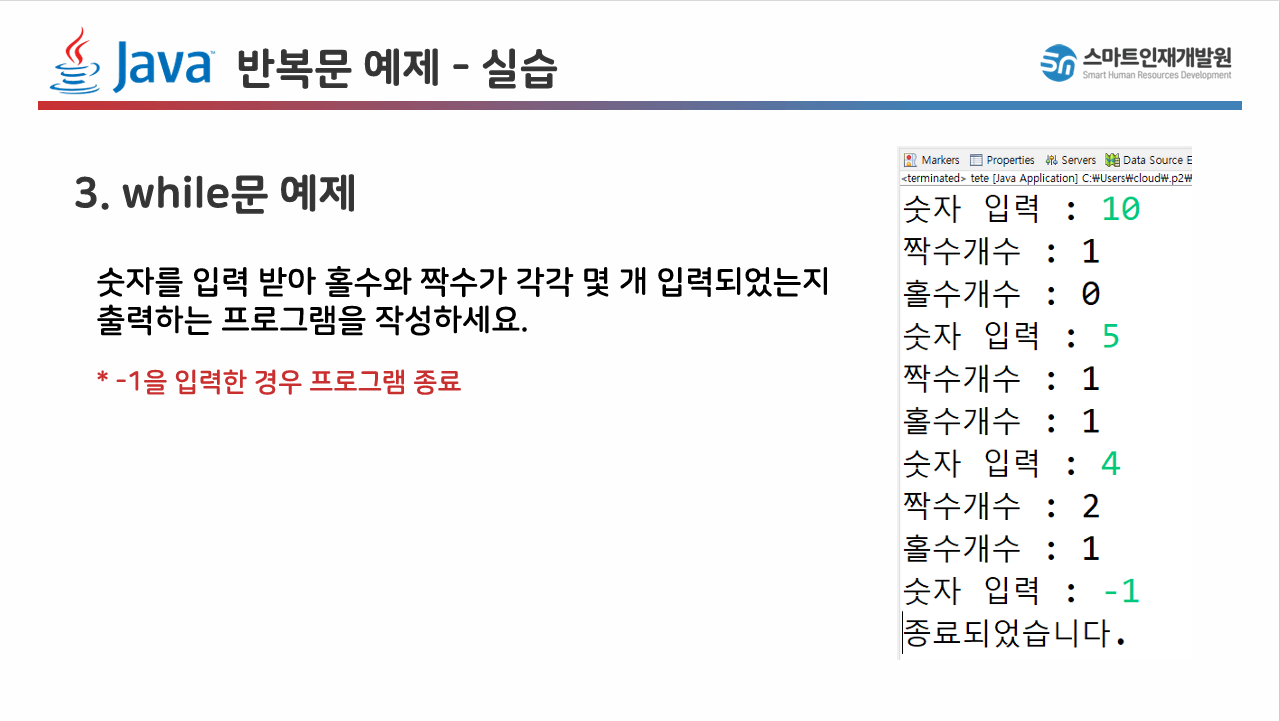 if(num == -1) flag = false; // -1을 입력받았을 경우에는 while문 빠져나오기(flag 상태 변경)