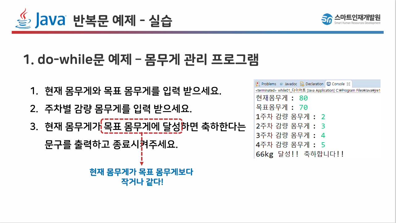 } while (cWeight > gWeight); // 현재 몸무게가 목표 몸무게보다 크면 while문 반복
