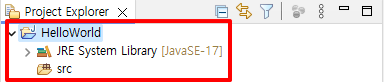 - 패키지 탐색기(Package Explorer): 프로젝트와 파일을 탐색하고 관리할 수 있는 창입니다.