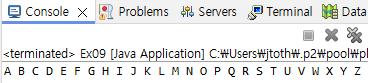 System.out.print((char) i + " ");