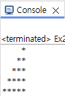 - String stars = "*".repeat(i);: 현재 줄에서 출력할 별의 개수를 설정합니다. 첫 번째 줄은 1개의 별, 두 번째 줄은 2개의 별, ..., 마지막 줄은 5개의 별을 생성합니다.