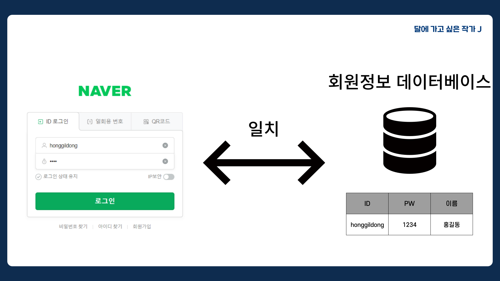 - 예제: 사용자가 웹사이트에 로그인할 때, 입력한 아이디와 비밀번호를 데이터베이스에 저장된 정보와 비교하여 일치하면 로그인에 성공합니다. 요즘은 ID와 PW를 각각 비교해, 어디가 잘못되었는지 그리고 그 회원의 과거 비밀번호까지도 관리하는 것을 확인할 수 있습니다.