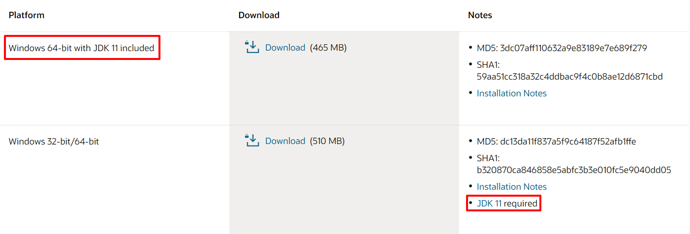 2. JDK11이 포함된 Windows 64-bit 버전을 설치해 줍니다. 자신의 컴퓨터와 운영체제, JDK 설치여부에 따라서 다운로드해 주세요.